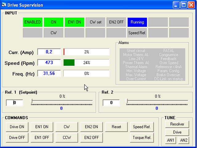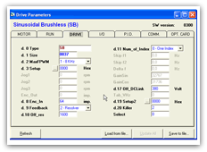 Program XBLAST je dodáván bezplatně k měniči. Pomocí tohoto programu lze měnič programovat, ukládat nastavení na disk do počítače, pomocí funkce "SCOPE" provádět zaznamenávat naměřené hodnoty proudu, otáček, polohy, vstupního signálu, výstupního signálu. Pomocí tohoto programu je také možné ovládat pohon.Více informací v instrukčním a uživatelském manuálu k měniči B